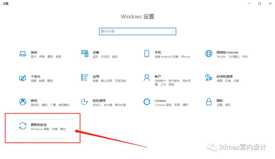 2、Windows设置界面点击最后一个“更新和安全”(有的电脑可能显示的是系“系统和安全”),每个人的电脑显示会略有不同,打开自己电脑上的即可;