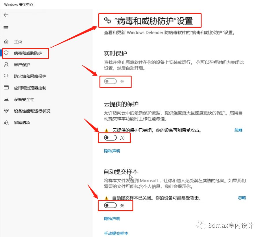 Win10系统关闭自带防护